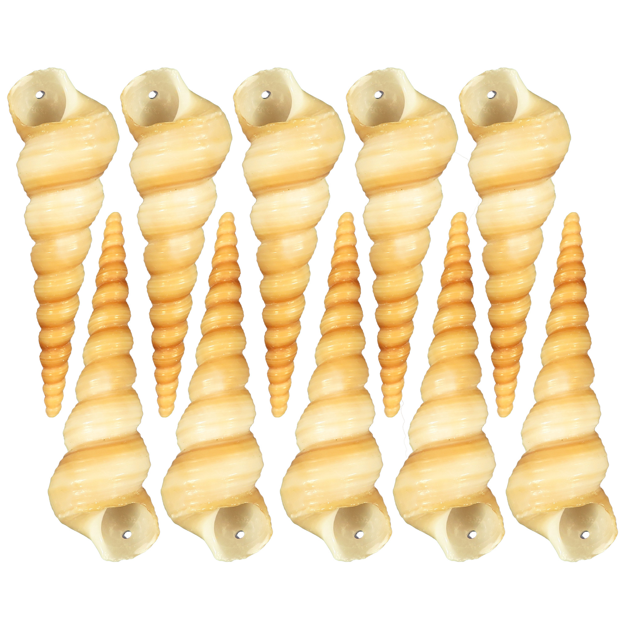 Shells drilled with a 2mm hole sold in quantity of 10. The holes will be as per the picture and one per shell. If you would like shells drilled to order please contact us. Minimum order quantity for custom order 50 shells.