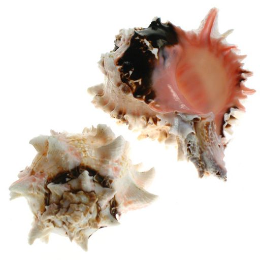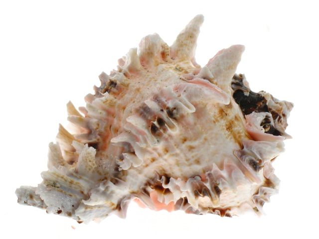 Approximately 6cm in length, this stunning medium-sized Regal Murex has beautiful features and colours. It has a smooth, bright pink interior with a light and dark bumpy exterior with a odd shape design.