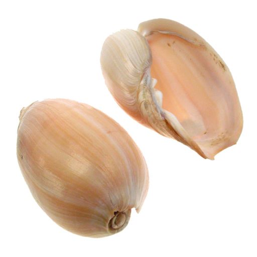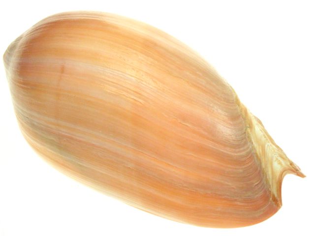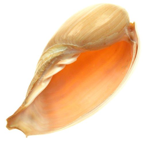 This melon coloured large Cymbium shell is swarmed with detail and has a shiny, smooth body with a unique pattern. The inside seeps through natural light adding ambience to the product. From the Volutidae family.