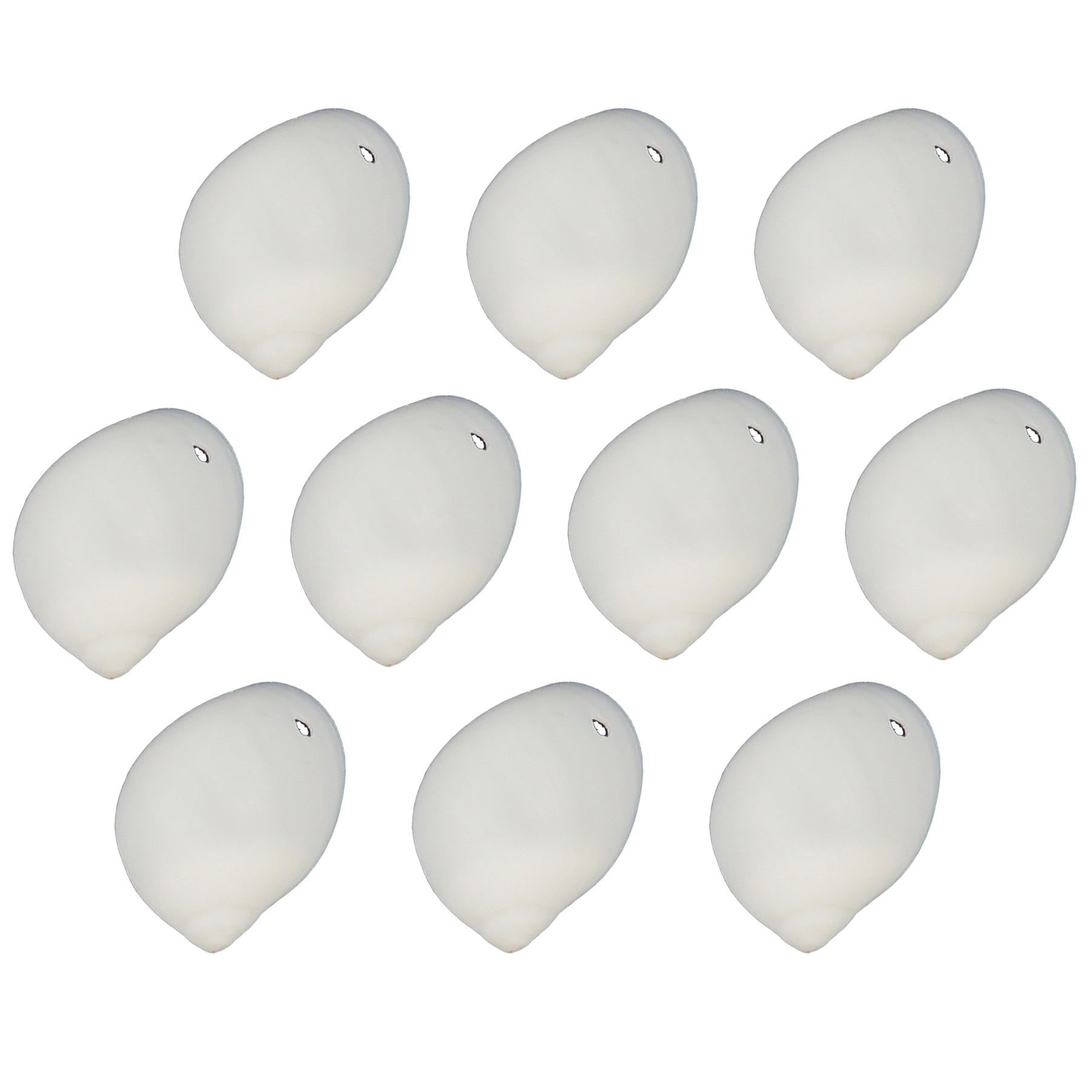 Shells drilled with a 2mm hole sold in quantity of 10. The holes will be as per the picture and one per shell. If you would like shells drilled to order please contact us. Minimum order quantity for custom order 50 shells.